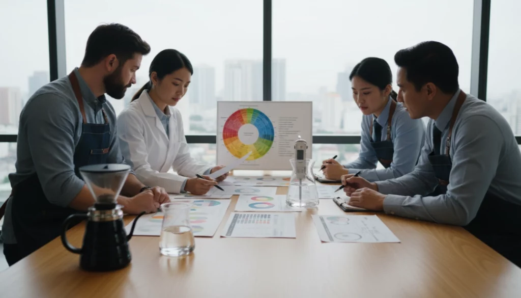 مشاوره با ذینفعان (روستریها، باریستاها، تولیدکنندگان).